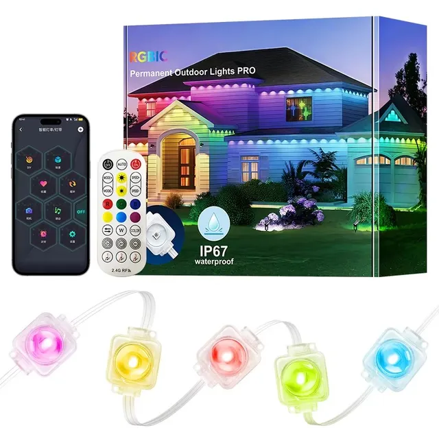15m 30m 45m 50cm Space 30 60 90leds Permanent Pixel Smart Outdoor LED Eave RGBIC Led Point Connectable Lights