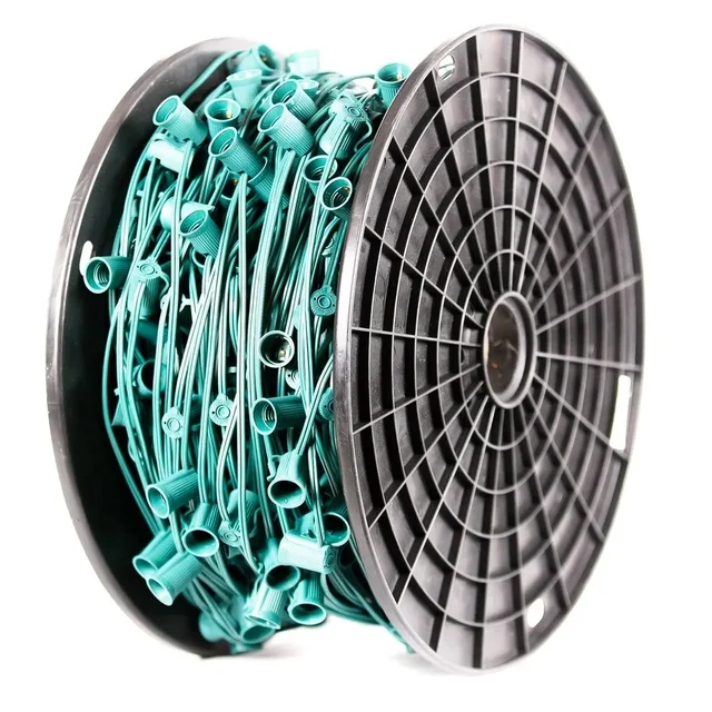 Outdoor 500FT Spool C9 Lights 12'' Space 500 Socket Christmas C9 Patio Roll Pack String Lights C9 Spool Cord Lights